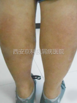 冯某起初患上银屑病时并不严重,因为不正确的治疗与用药导致病情加重恶化,冯某后悔不已。看着自己的腿上大片大片的红色斑块,冯某的心里焦躁极了,他四处奔走治疗,只希望自己的病能好转。朋友们也都帮着打听,在一位朋友的推荐下,冯某抱着希望与些许犹豫来到了郑州市银屑病研究所。主治医生发现他身上尤其是腿上,覆盖着大片的鳞屑,并伴有严重的瘙痒,病情比较严重。